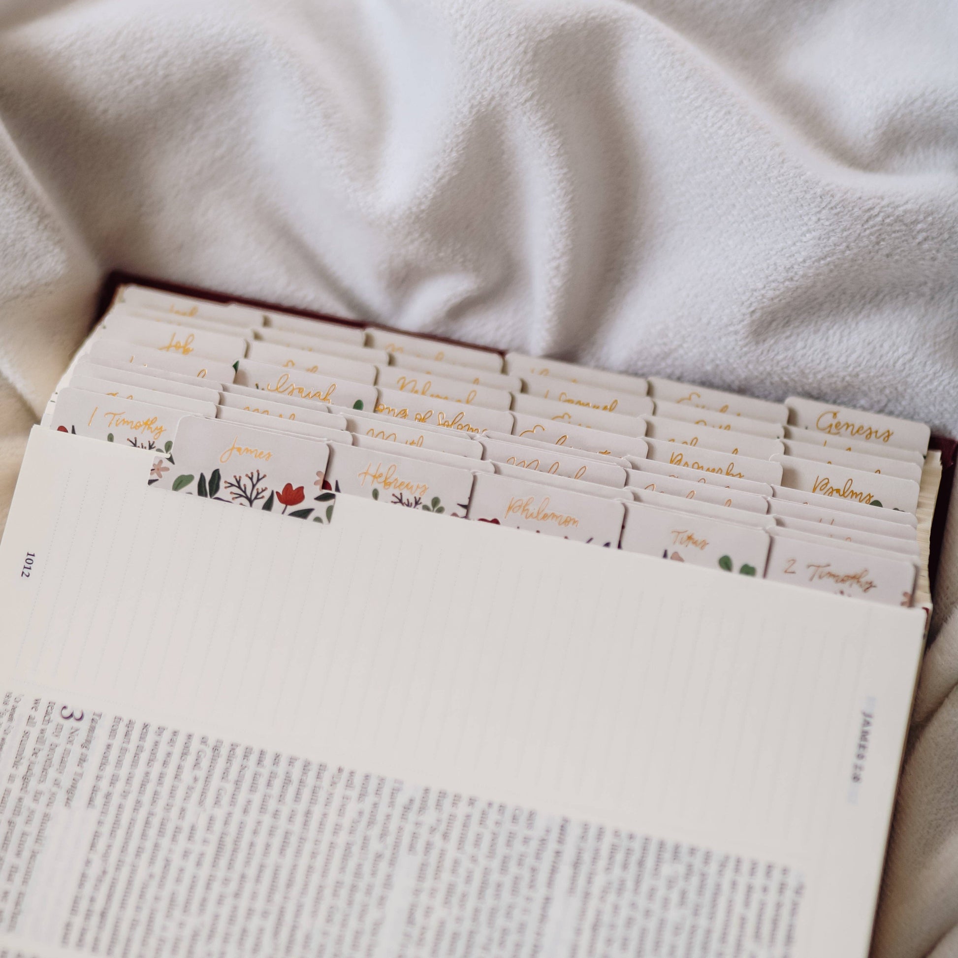 Organize your time in the Word with these neutral Rust Floral Bible Tabs, uniquely designed with a feminine flare and beautiful gold imprint.